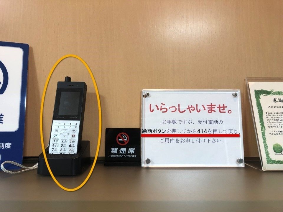 ⑬右側の受付電話で414を呼び出してください。